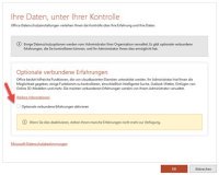 - Mittels „Optionale verbundene Erfahrungen” werden umfangreiche Daten an Microsoft übermittelt. Diese ermöglichen die Nutzung von Services wie z.B. Übersetzung, Designvorschläge usw.