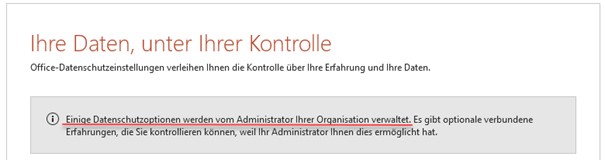 - Durch Sensibilisierung der Mitarbeiter und durch interne Richtlinien sollte eine Verwendung von der mobilen Office-Apps sowie der Office-Online-Apps möglichst unterbunden werden. Grund: in der DSFA die durch die niederländische Aufsichtsbehörde beauftragt wurde, wurden mehrere Risiken in Bezug auf die Datenschutzrechte der Betroffenen identifiziert, die nur durch Microsoft abgestellt werden können.