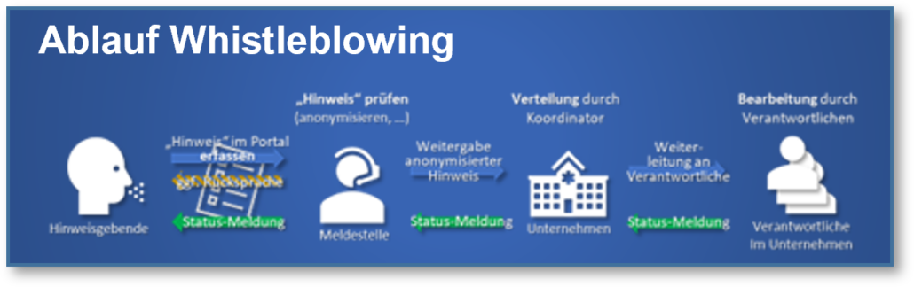 - Der Hinweis wird durch die Meldestelle geprüft und verifiziert (z.B. auf Datenschutz).