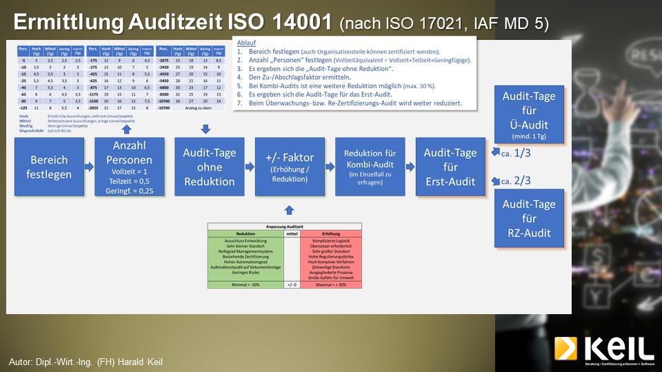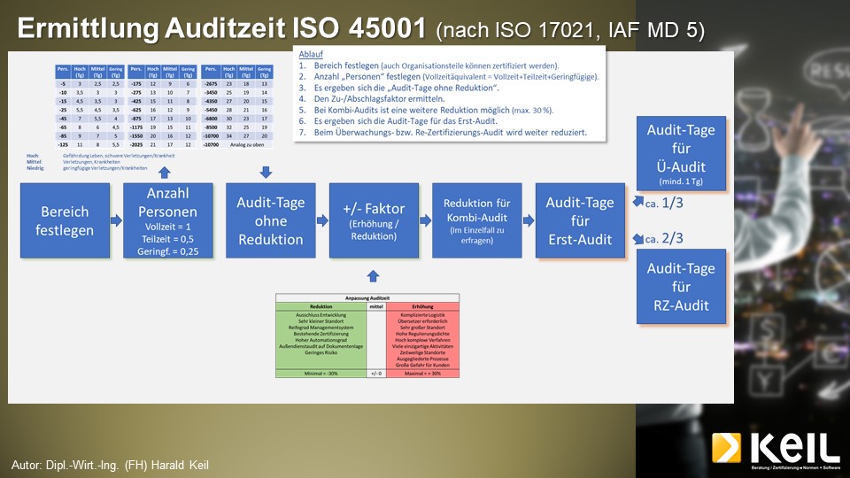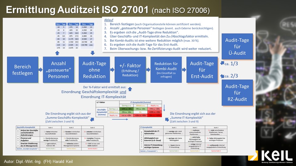 Die Kalkulation der Auditzeiten ist international einheitlich geregelt und folgt klaren Vorgaben. Unten ist die Auditzeit-Ermittlung grafisch dargestellt. Entlang dieser Vorgaben ist auch die “Kalkulation” aufgebaut.